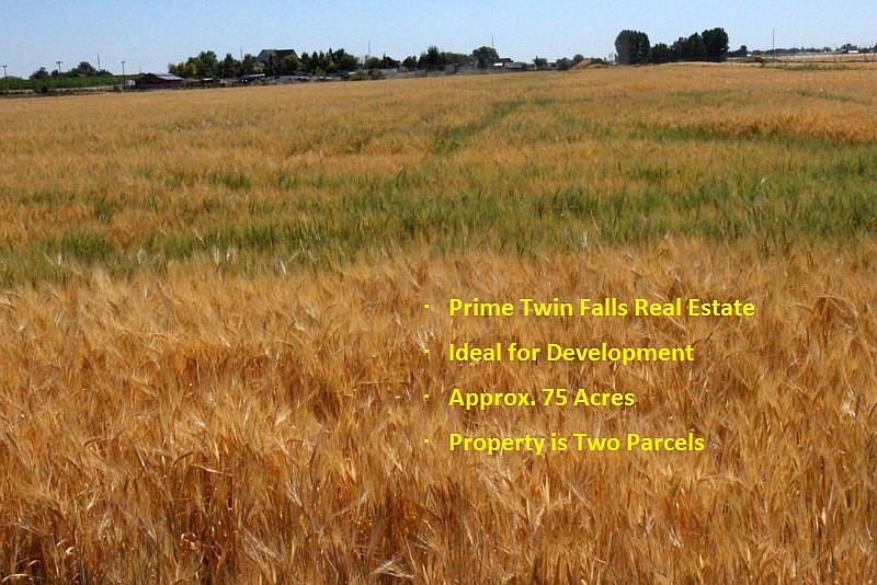 Prime Twin Falls Real Estate Ideal for Development. Approx, 75 Acres. Water and Sewer Along Kimberly Road. Property is Two Parcels. Brick Home, and Metal Shop are Not Included in the Sale. Property Lends Itself to a Commercial Development as it is Directly Across the Street from Worlds Largest Yogurt Plant.