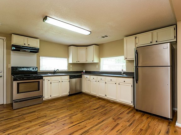 This very stylish home offers a lot of surprises when you enter inside. The Spanish Forte offers beautiful hard wood floors through the kitchen and an open-concept den, as well as a separate living room. In the kitchen there are new stainless steel appliances, an eat-in nook, and a built-in desk. Enjoy the covered back porch! Both bathrooms have updated fixtures and the en-suite has a newly renovated stand-up shower.com/houses-for-rent/ This property allows self guided viewing without an appointment. Contact for details.