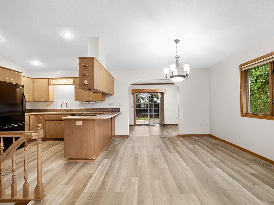 Welcome to this gorgeous ranch-style home in Green Acres, where BRAND NEW VINYL PLANK FLOORING & fresh paint enhances the entire Main Level! As you step inside, you're greeted by an open concept layout that seamlessly connects the Living Room, Dining Room, Kitchen, and Four Seasons Room that features a sliding glass door leading to the fully fenced backyard— a perfect set up for hosting gatherings! The wrap-around Kitchen offers functionality and style, with a convenient breakfast bar ideal for serving meals to guests or family members in the adjacent Dining Room. When it's time for bed, sneak away to one of the three main-level bedrooms, including the spacious Primary Bedroom with a 3/4 Ensuite and a Walk-In Closet. The other two Bedrooms enjoy easy access to a full Main Level Bathroom. A Laundry Closet is conveniently located down the hall from the bedrooms. The Basement provides even more living space with two egress Bedrooms, a Non-Egress Bedroom perfect for an office or playroom, a cozy Family Room with a Gas Fireplace, a 3/4 Bathroom, a Storage Room, and a Mechanical Room. The insulated Double-Stall Garage adds extra convenience for parking and storage. Outside, the fully fenced Backyard features a shed, paver patio and an apple tree—perfect for enjoying the outdoors. This property also comes with NEW shingles for added peace of mind. Don't miss your chance to make this beautiful home in Green Acres yours! Schedule your showing today!