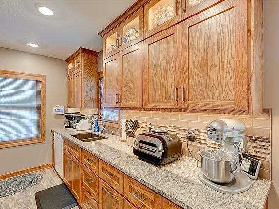 This lovely 1-1/2 Story home over looks "TOWER PARK" from the west. Two bedrooms on the main floor with full updated bathroom. The third bedroom is a large suite with lots of closets and storage upstairs...plenty of Room for a desk & chair, TV music. This home also has a 4th bedroom non-conforming on the lower level with a new updated 3/4 bathroom. The lower level has the laundry area and a large family room. YOU will love the new oak wood kitchen with lighted cupboards and new HEATED tile flooring that also goes into the cozy sun porch. Spacious 2 car garage (22x33) with door openers. This home has all replacement windows and metal shed behind the garage goes with the property. Radon test is for buyers knowledge only. Seller will not mitigate for Radon. This home is immaculate and is in great condition........ a must to see!!