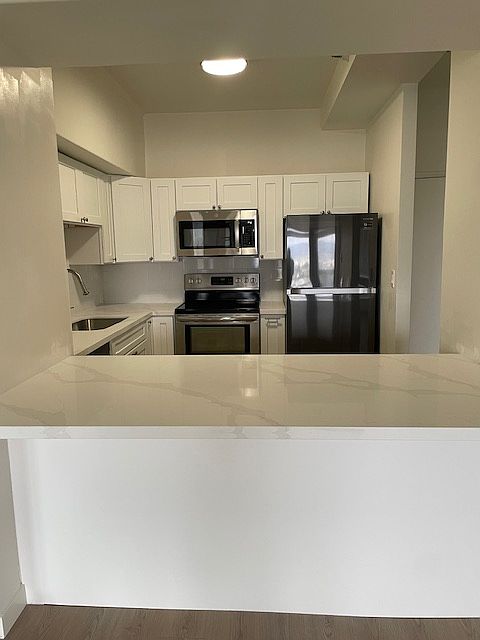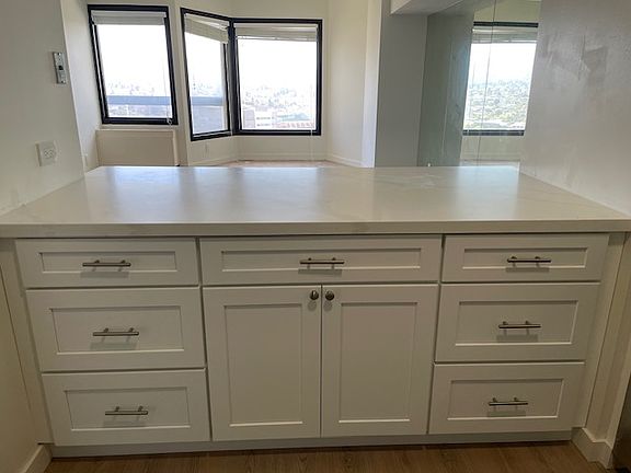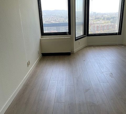 Newly remodeled from top to bottom 1 bedroom/ 1.5 bathroom on 22nd floor with Berkeley- Oakland Hills view. Brand new kitchen, bathroom, flooring, new paint and more... 24-hour security desk, fitness center, sauna, pool, tennis courts, and bayside lounge. 1 secure covered parking space and additional parking lot available for guest parking. Laundry facilities located on each floor of the building. Utilities not included.