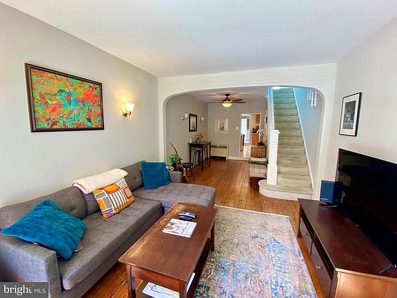 Property is occupied, please observe safety protocols. Wear a mask and practice social distance. 2Br, 1.5 BA Charming Brick Townhouse located on a tree-lined street in the heart of Upper Fells Point, adjacent to Patterson Park. You are going to enjoy the welcoming blue door to your new home along with your special mailbox. First level open concept with living room that boasts of decorative stained glass over both door transient and large living room window. Original hardwood floors in living room and dining room area. Half-bath and washer/dryer on main floor behind kitchen. On second level is an open space that can be used as sitting area or office/den with large skylight along with two bedrooms and full bathroom with new subway tile in the bathtub. Lovely private patio with lots of potential to grow flowers and vegetables in your peaceful urban setting and to entertain or enjoy quiet time reading and relaxing. Unfinished basement that is great for storing your bikes and your gardening supplies. One year Home Warranty provided at closing. Walking distance to Patterson Park, Canton, Fells Point and nearby Harbor. Just blocks away from countless bars and restaurants. Convenient location from Hopkins shuttle stop. Major commuter routes to I-95, I-83, and I-695.