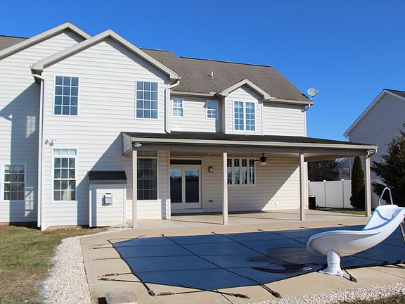 Impressive 4BR/3.5BA Colonial for sale in the Briar Bend neighborhood. Plenty of space to live & entertain! You'll love all the special details through this home. Hardwood flooring throughout the main floor. Formal living & dining rooms. 2 story Family Room has a gas fireplace and lots of windows making it a light & bright space open to the Kitchen. Large Kitchen space with island, lots of beautiful cabinets & stainless steel appliances (included in sale). A sliding glass door off the Kitchen leads out to an outdoor patio space. A powder room and convenient main floor laundry room complete the main floor. Upstairs you'll find a large Master Suite w/ 2 spacious walk-in closets and an attached full bath with soaker tub & separate stall shower. 3 additional bedrooms & an additional full bath. The basement is finished with a large Family Room and an additional full bath. Outside you will find the perfect spot to relax on the covered back patio w/ ceiling fan overlooking a fully fenced backyard and your own in-ground pool! Picture yourself spending your summers in this space! 2 car garage. This home is well maintained & pristine throughout- ready to move right in and make it your own! Backs up to rolling farmland and convenient to commuter highways, shopping, schools- everything you need! Central Schools. Schedule your showing today & check out all this property has to offer!