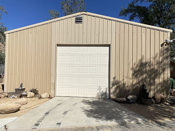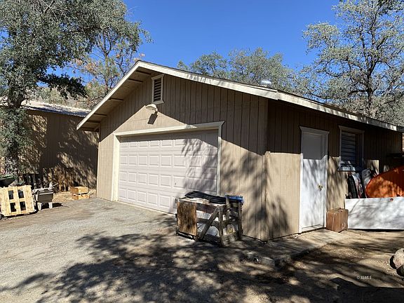 3000 Sq Feet of Workshop and garages. One 6 car garage with 6 separate doors, one 2 car garage and a 1200 sq ft high bay workshop with 220 VAC and Lighting. Auto roll up door. Paved entry to all buildings. Electric,lighting and auto doors in all buildings. Plus a 1440 sq ft 2BR/2BA mobile home at the back of the property with enclosed patio, pellet stove, newer carpet and appliances and permanently attached (Not financeable due to age). Oak trees, gazebo and rock work around home. Owner replaced all perimeter walls with added insulation and drywall. Two coolers. Permawood patio. Backs up to Bodfish Creek so no neighbors directly behind.