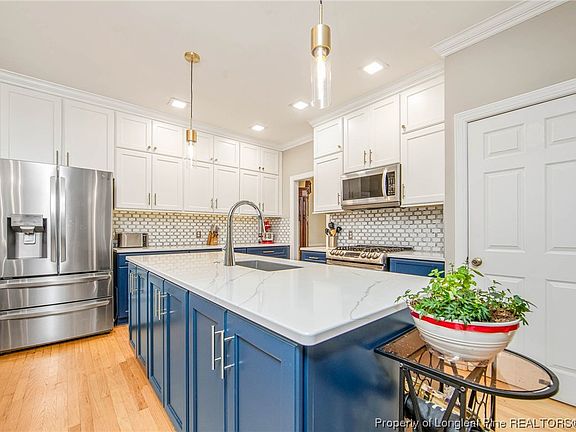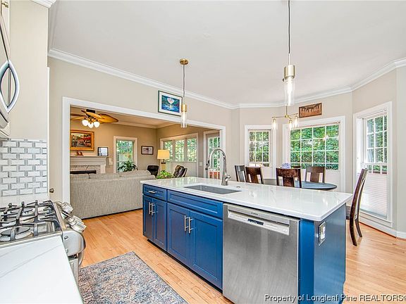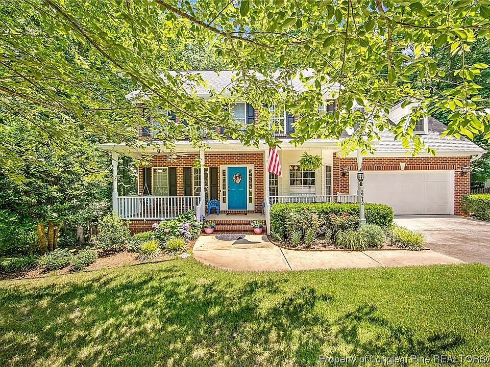 Welcome to your dream home in West Sanford! This stunning 5-bedroom, 3.5-bath property in the sought-after Brownstone Subdivision offers luxury and functionality. The rocking chair front porch creates an inviting atmosphere. Inside, hardwood floors and custom Graber window coverings add warmth and elegance. The kitchen features quartz countertops, a granite sink, and SS appliances. The open layout connects the kitchen to the living area, perfect for entertaining. The primary bedroom offers a glamorous bathroom and walk-in closet. The finished walkout basement is ideal for a mother-in-law suite, young adult living at home, or a mancave. With over 3,000 sq ft of space, there's plenty of room for lasting memories. The rear deck overlooks the fenced and wooded yard. Location-wise, this property is a commuter's dream, with easy access to Raleigh and its amenities. You can enjoy the tranquility of a serene setting while still being conveniently connected to city life.