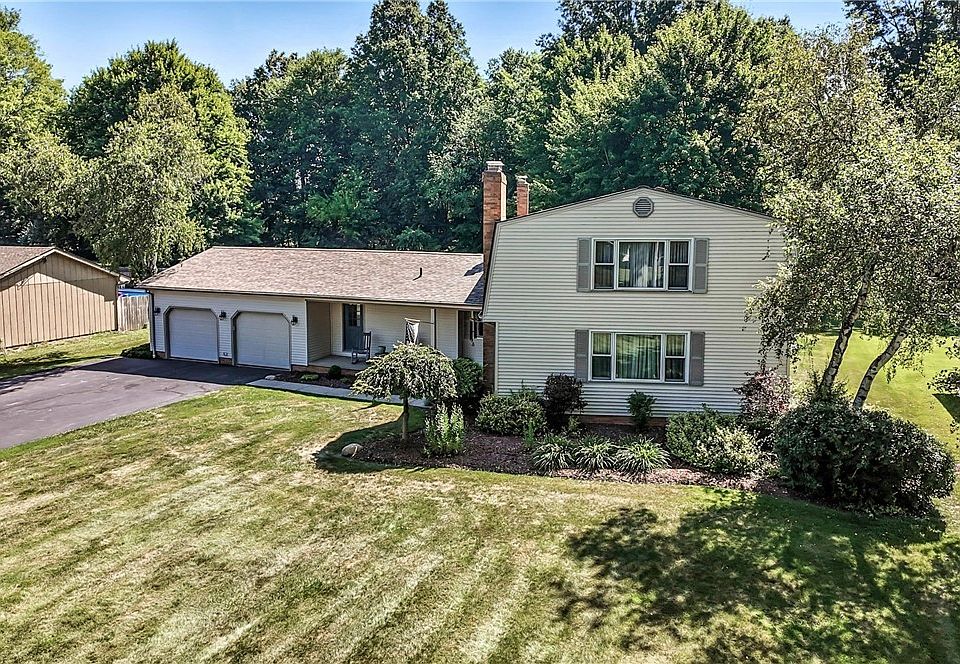 Welcome to this charming 3-bedroom home situated on a sizable lot in a lovely Howland neighborhood. An inviting front porch leads you into the home where you will quickly see a floor plan that offers comfortable living space with plenty of room for entertaining. An exceptionally large living room, with a gas fireplace and plenty of natural light from the picture window leads to the dining room with a new sliding glass door. The recently redone kitchen boasts granite counters, glass front cabinets, a large pantry and a comfortable eating area with sliding doors that lead to the outdoor deck. New dishwasher (2024), gas range (2023), refrigerator and microwave remain with home. A substantial family room is graced with sizable windows overlooking the back deck and yard, with easy access to the laundry/mud room and the recently updated powder room. Hardwood stairs lead to the second floor where you will find a beautiful and cozy master suite with a gas fireplace, walk-in closet, built in bookcases and ensuite complete with an oversized shower. There are two additional bedrooms and a full bath which was recently remodeled. The basement includes a rec room with a bar and sink, new carpet, and plenty of storage space. A slate pool table/ping pong table remains with the home. A beautifully landscaped outdoor space includes a grilling station with a natural gas grill and a charcoal grill that remain with the home, great for entertaining. The home boasts several updates including a new roof (2020), new air conditioner (2019), new water heater (2025). Schedule your showing today!