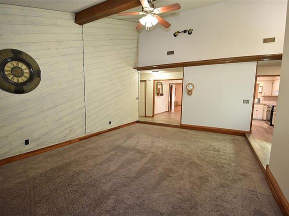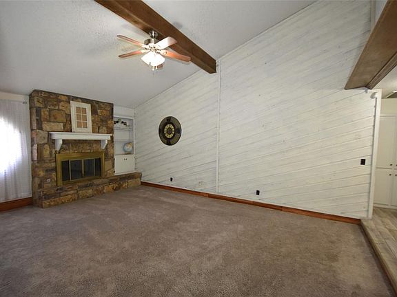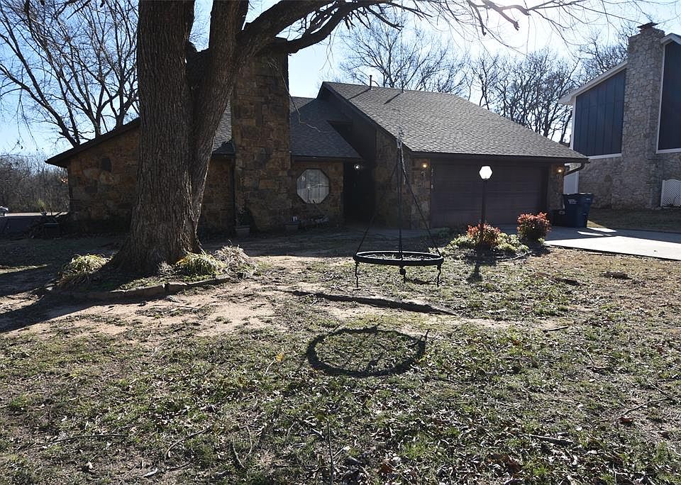 Beautiful updated 3 bedroom, 2 bathroom rock home with an in ground pool definitely checks all the boxes. Enter the home to find a large living room with soaring ceilings, gas log fireplace and built in shelving. Pass through into the kitchen with granite counters, painted cabinets, stainless appliances and breakfast bar. Kitchen includes a desk area and dining space. The expansive second living area which is approximately 500 square feet (mol) is truly an entertainment space. This room has a wood burning fireplace, double closets, pass through window from the kitchen, a wet bar and spacious window seat with views of the backyard oasis. Easy access through French doors to a covered patio and in ground swimming pool, fenced yard and a storage building. Primary bedroom with en suite bathroom is updated with newer tile shower, fixtures and built in linen storage. Secondary bedrooms are nice size and near the additional bathroom which also has newer tile and fixtures. High impact shingles installed 2024. In ground storm shelter is located at the side yard. Home is located in a well established neighborhood, near schools, and local shopping. Hitting the market just in time to host spring cook outs and make summer pool party memories!