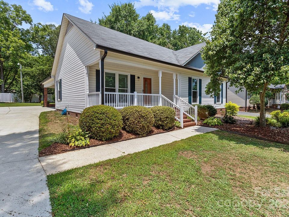 A MOVE IN CONDITION attractive home situated in a nice smaller neighborhood, close to the cul de sac. *Professionally CLEANED Inside & out and Professional NEUTRAL FRESH PAINT throughout. Front porch with vinyl railings. Fiberglass front door with glass accent. Vaulted greatroom opens to the dining room. Kitchen features Kenmore Elite matching Stainless Steel Appliances: Refrigerator, Dishwasher, Glass top Stove, & Microwave. GRANITE countertops. 3 bedrooms w/ ceiling fans & 2 full bathrooms. A long driveway w/ extra parking & 393 sq ft 2 CAR ATTACHED CARPORT (could be used as an outdoor entertainment area). Concrete Patio for backyard BBQ's. Attached storage room 46 ft & front porch is 108 sq ft. Updates: *HVAC Gas pack 2023. *Gas water heater 2023. *TEMPERED GLASS WINDOWS 2022 & Gutters 2022. Zero HOA Fees! Floored Attic for storage above carport. Close to I-85, shopping, hospital, schools, train station, Kannapolis New Downtown w/ baseball stadium & restaurants, city parks.