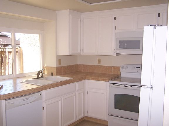 Recently painted inside and out,new carpets,dual pane windows ,updated doors and hardware, 2inch wooden blinds throughout, Central heat and A/C 8 year old metal tile roof, Two car garage with storage cabinets. Exterior low maintenance yards with automatic irrigation.