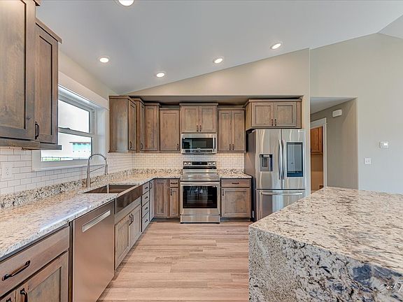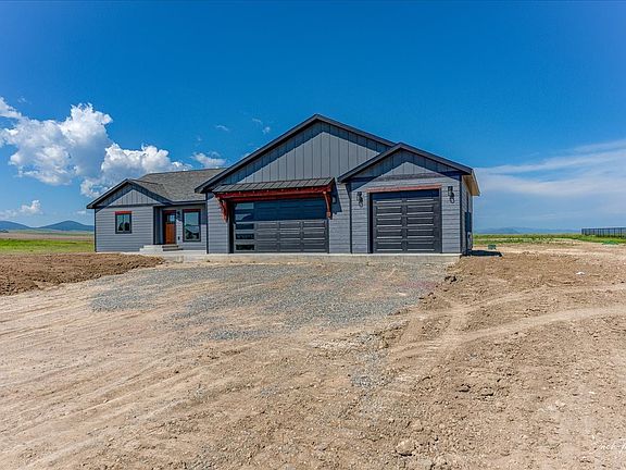 Beautiful finishes boast this one level 2171 sq foot home located in Wheat Ridge Estate. This 4-bedroom, 2-bathroom home is located on a 2-acre lot with 360-degree views of beautiful mountains, city lights, and Montana's Big Sky. Granite countertop waterfall feature, custom cabinets in kitchen and bathrooms, with timber features inside and outside. Oversized covered patio out back to relax or entertain. Tiled walk-in shower in en suite, vaulted ceilings, and stainless-steel appliances. Beautiful backsplash and custom lighting are featured in this brand-new build. Minutes away from Canyon Ferry Lake, airport, and Highway 12. New Construction and ready for you! Taxes are based on land only. Completion day is close!