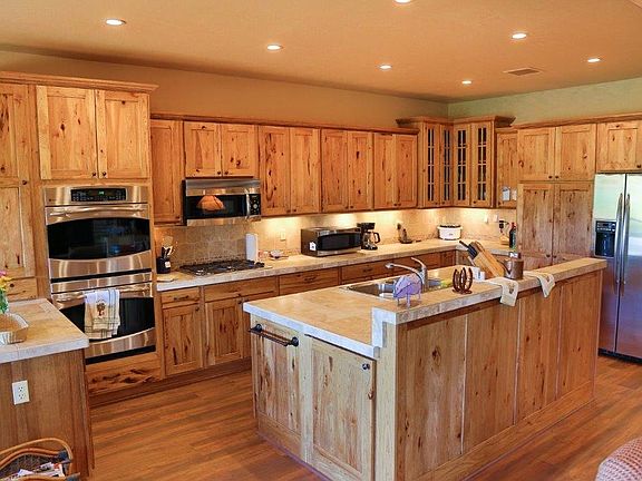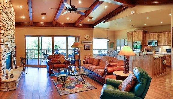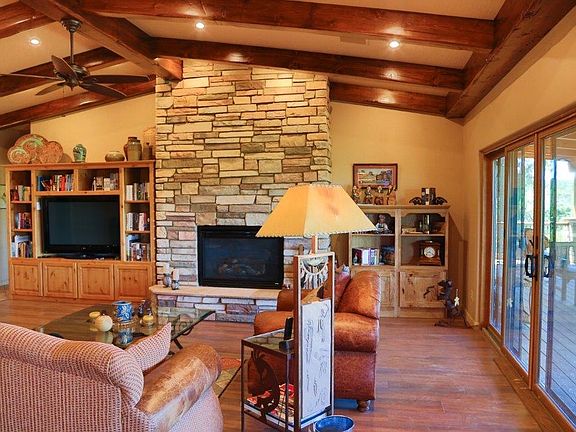 Expansive views and single-level living is what this home is all about! Located in one of Chaparral Pines most prestigious neighborhoods, on Filaree Circle, this home is private and quiet with extraordinary views of the Mogollon Rim. The great room kitchen combination with log-beam vaulted ceiling looks out over the 'Trex' deck with unparalleled views to the north. Gourmet kitchen is equipped with the most modern of GE Profile stainless-steel appliances. Knotty alder cabinets with handy, full-extension, pull-out drawers complete this charming room. Enjoy the cozy warmth of the sunrise and 270-degree view with your tasty breakfast in the dinette area. Three bedrooms each with a full bath, and walk-in closet. Formal dining area, covered front porch and large rear deck, and extra-large 2-car garage complete this quality-built and very comfortable home. Solar panels added in 2015 result in $22 monthly electric bills throughout the year.