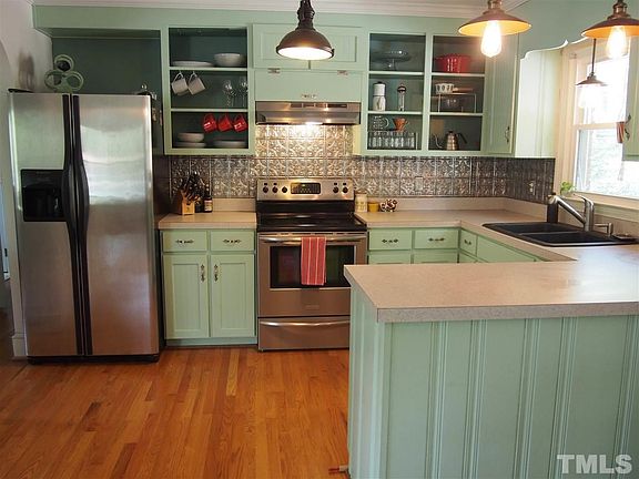 Bright and open floor plan with huge front window overlooking your large corner lot. Original hardwood floors, stainless steel appliances, and tile baths. Backyard features custom-built chicken coop, garden beds, firepit, and picnic area ready to enjoy. Pool and tennis club optional to join right across the street! Convenient to Crabtree mall, I-40-440, US 70, shopping, and restaurants!