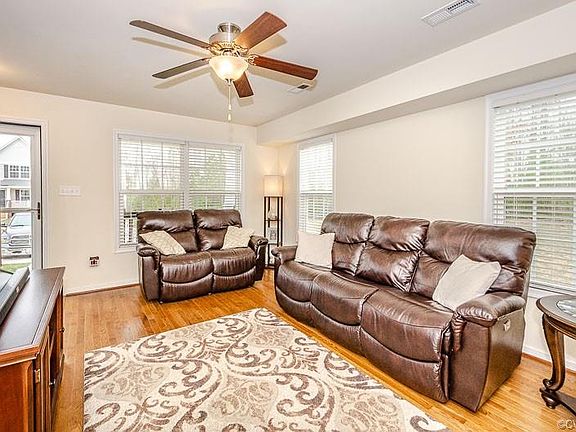 BACK ON THE MARKET AT NO FAULT OF THE SELLER, this charming move-in ready home is waiting for you! This wonderful 2-story home at the end of the street has plenty of privacy but keeps the neighborhood feel. Enjoy the upcoming spring and summer months outside on the spacious front porch or patio out back, perfect for grilling and outdoor entertaining. Inside, the open first floor provides great flow, from outside to inside. The family room, with numerous large windows, has an abundance of natural light, while the eat-in kitchen is bright and cheery with plenty of cabinet and pantry space. A half bathroom rounds out the first floor. Retreat from the daily living spaces to the second floor. Both bedrooms have ceiling fans and ensuites. Finishing off the second floor is the laundry room, which has built-in shelving for additional storage. With fresh paint and professionally cleaned carpets, you can move right in and start enjoying your new home is this great neighborhood!