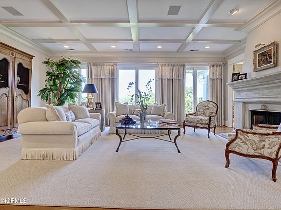 Privacy abounds with a backdrop of beautiful Howe Creek overlooking Landfall's Jack Nicklaus designed Ocean #5 golf course. This quality built home features an open floor plan with 3 bedrooms and 3 1/2 baths on the first floor and a home theatre or 4th bedroom with 4th bath over the 3 car garage. Enjoy outdoor living amidst lush landscaping with a private stone paved courtyard and bubbling fountain as you enter the front door. The large living room/dining room, kitchen/sunroom and master bedroom all access the raised stone terrace with powered awning. Custom moldings and built-ins are found throughout the home and unique features include a cast stone fireplace, a cozy study with wet bar, walk in closets and a screened porch.