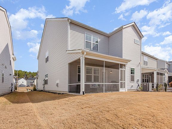 Discover the perfect blend of style, comfort, and functionality in this beautifully designed 5-bedroom home for sale in Ellis Walk, one of Durham's most desirable communities. Step into a wide, welcoming entryway that opens to a thoughtfully designed layout—ideal for everyday living and effortless entertaining. The modern kitchen features sleek gray cabinetry, crisp white countertops, a designer tile backsplash, stainless steel appliances, a spacious eat-at island, and a walk-in pantry with generous storage. The large family room centers around a cozy fireplace, creating a warm and inviting atmosphere. On the main level, you'll find a first-floor guest suite or mother-in-law suite—perfect for multi-generational living, visiting guests, or a private home office setup. Upstairs, the private primary suite impresses with a tray ceiling, abundant natural light, and a premium custom-built walk-in closet—an after-market upgrade that adds everyday luxury. The spa-like primary bathroom includes dual vanities, a soaking tub, and a separate glass-enclosed shower. Three additional bedrooms upstairs provide flexible space for family, guests, or hobbies. A versatile loft adds even more room to relax, work, or play. A well-appointed full bath conveniently serves the secondary bedrooms. Enjoy peaceful outdoor living on the screened-in porch overlooking a private, wooded backyard—ideal for morning coffee or evening relaxation. A whole-home water filtration system is already installed, offering peace of mind and added value. Don't miss your chance to own a move-in ready home with thoughtful upgrades, a guest suite, and space for everyone—all in a vibrant neighborhood close to shopping, dining, and top-rated schools.