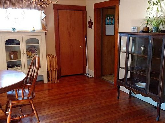 What a great "older 2 story home". Starting with the 2-car garage, concrete drive and nicely manicured double lot, then onto the relaxing deck when the weather is perfect for your outdoor entertaining. Entering the front of this home, youll love the enclosed sun room for those rainy days. Onto the spacious living room with hardwood flooring and the dining room also with beautiful hardwood flooring. Newer flooring, Corian counter tops and appliances compete this spacious kitchen. First floor bathroom also boasts of Corian counter top. When you view the 3 bedrooms, youll get a nostalgic feeling reminiscent of days gone by and yet very comfortable. The basement of this home has a full smaller bathroom and laundry area but you will find the real beauty in the finished room offering a counter top bar and sitting area for that perfect "man cave" and yes, even the "lady cave". Notice the beautiful flooring in this space You wont be disappointed when you get all of this for $88.900. Roof was replaced in 2003. Pride of owner ship shows in this great home. You coudl be the next lucky homeowner.