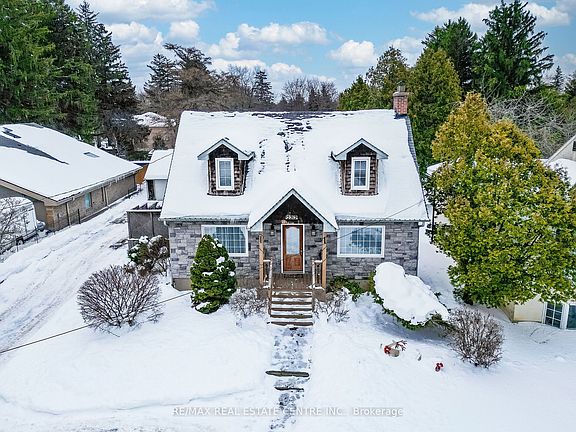 Cozy private and charming Cape Cod house located on huge over 0.6 acre (133 ft wide at the brch) lot located across from Blythe Rd/ Doulton neighborhood. Home features large open concept room with hardwood floors, wood burning, fireplace and potlights, separate dining room with hardwood and picture window. home features family size kitchen combined with breakfast area and breafast bar. Good size bedrooms on the second floor, finished basement with 3 pc bathroom , workshop and great room.