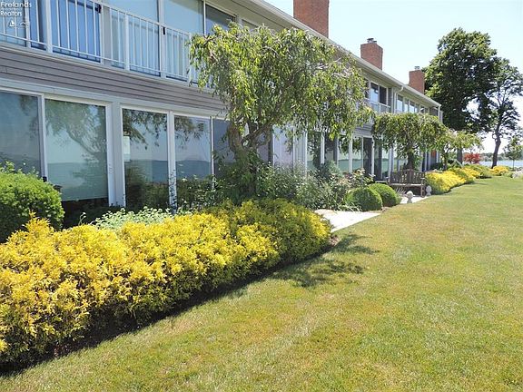 This condo sits on edge of Lake Erie with a deep water marina at the door. It has been completely refurbished from top to bottom. All new kitchen with granite, tile flooring, stainless steel appliances, gas stove & more. New washer and dryer. The master bath has walk-in shower tiled from top to bottom. Check out the stone fireplac from ceiling to floor w/gas logs. All doors have been changed out to 6 panel doors thru out unit. The grounds are meticulously maintained and many flower beds surround the complex. Sit at the waters edge and just watch the boating activity and enjoy the dazzling sunsets. Plenty of garden areas including herb garden. Perfect place to entertain or just relax with a glass of fine wine and forget all of the problems in the world as the waves lap up against the protective stone rip-rap. There is no other spot like this on Catawba Island. Come and see for yourself.