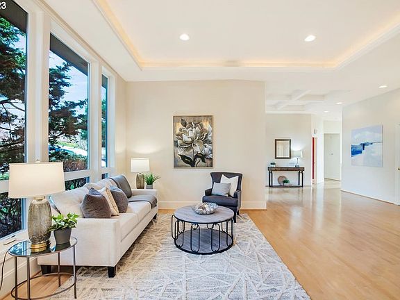 Stunning home with light filled rooms,amazing views including the coast range!All living spaces on the main level including Master BR den/office.A private guest suite downstairs with closet large enough for nursery, wine storage...Also downstairs,a huge bonus room,wet-bar,fireplace and doors out to lower level deck.Ext is real Stucco. Ameneties include NO HOA DUES,free shuttle to Sunset Transit,miles of walking trails,Forest Heights Village and convenient commute to downtown,Intel,Nike, St. V's [Home Energy Score = 2. HES Report at https://rpt.greenbuildingregistry.com/hes/OR10205096]