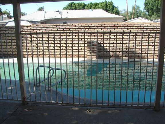 3 bedroom, two bath with den or office. Pool is fenced separately. Newer paint and carpet throughout.