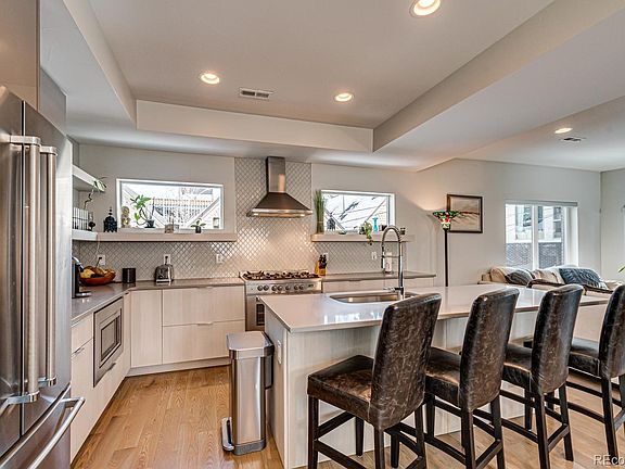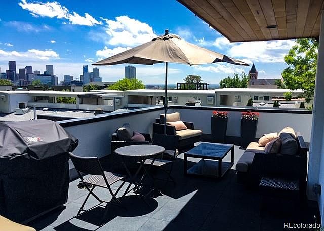 Beautiful Luxury Townhome in the heart of LoHi. Your friends will never want to leave the stunning *roof top deck* with incredible views of the city. Your pup may never want to leave your private fenced yard, complete with a sprinkler system to keep the yard green and healthy. The first floor is where you will find the 2 car garage(with epoxy floor coating) and the 3rd bedroom/office with tons of natural light, perfect for meeting clients with a separate entry. One flight up leads to the living room and a kitchen that would make any chef proud-with European style cabinets, Quartz countertops, SS appliances (including a Verona range)and designer touches. This main floor has White Oak flooring and double sliding glass doors (which open to a balcony)for a wealth of natural light. One flight up you will find the Master bedroom with a spacious walk in closet and another balcony, the second bedroom, and the laundry. This incredible unit has over $9K in upgrades ($7,500 in window treatments-most are motorized, $1,500+ security/privacy window tint). You will be just steps from Uncle, Bar Dough, Duo,Williams and Graham, or maybe you prefer sweets from Little Man Ice Cream. No matter your desire, LoHi has it. This is an incredible turn key opportunity to own one of the best properties in the city, come see for yourself and fall in love. *Be sure to click on the movie reel icon to view the rooftop deck from the air!*