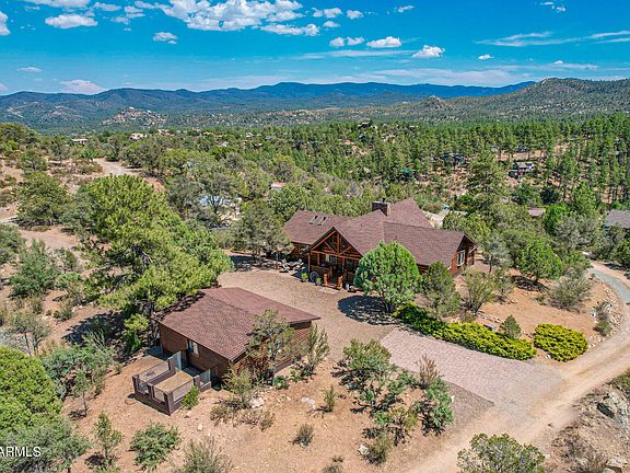 Escape to your ultimate mountain retreat! This exceptional custom log home provides a truly secluded oasis, offering breathtaking views of the majestic Bradshaw Mountain range. Nestled alongside a picturesque canyon and Aspen Creek, this 1.25 acre property blends natural beauty with rustic charm, all while being a mere 7 minutes away from the Prescott square.