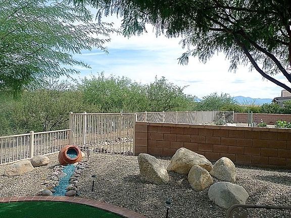 Ooh la la...this Southwest charmer shows like a model home. From the gleaming Satillo tile floors to the warm paint colors throughout, its inspired interior will invite you to make it your own. Outstanding Arlington floor plan has split bedrooms and a large great room. Kitchen cabinets are maple with a gorgeous autumn stain and ebony blaze, complimented by black Silestone countertops and stainless appliances. Step outside to a large yard that backs to a wildlife filled arroyo and enjoy being serenaded by the chorus of birds who call it home. A screened in AZ room, huge brick patio, 2 putting greens give you many options for reveling in the endless days of sunshine and for viewing the lovely Santa Ritas. Brokered And Advertised By: RE/MAX VALLEY PROPERTIES Listing Agent: JUDI MONDAY