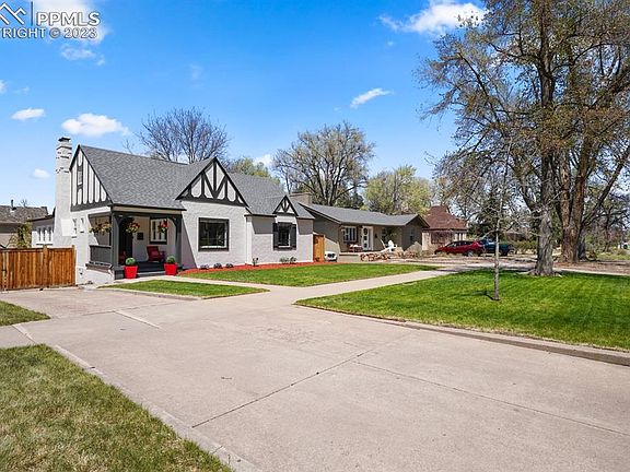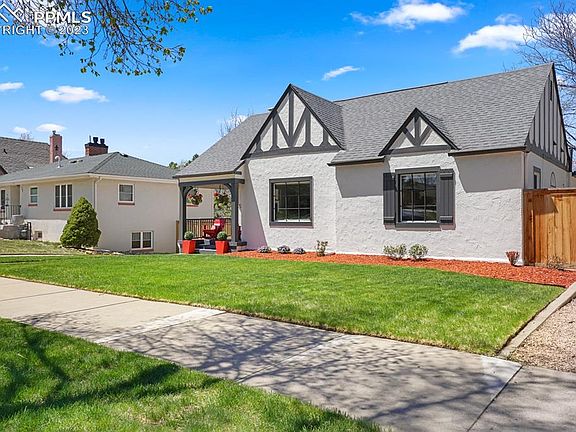 Welcome to this charming 4-bedroom, 3-bathroom single-family home nestled in the historic Old North End neighborhood of Colorado Springs. This 1927 gem has been thoughtfully updated, blending modern conveniences with its original character. You'll enjoy breathtaking mountain views and the latest in smart home technology, featuring low-energy LED ceiling light fixtures, smart switches, doorbell, thermostat, and smoke/carbon monoxide detectors. Step inside to a sun-drenched living room, boasting original hardwood floors (refinished in 2018) and a cozy fireplace. The formal dining room offers walk-out access to a spacious private deck, perfect for al fresco dining and entertaining. The stylish kitchen features stainless steel appliances, a functional island with seating, and an under-sink reverse osmosis water filtration system. The family room provides additional space for relaxation or hosting guests. The generously sized primary bedroom is located on the main floor, complete with new wood floors, an ensuite bathroom, and walk-out access to the deck. The walk-out basement opens to a private yard, showcasing an expansive area for extra living space, a fireplace, and a laundry/exercise room with new luxury vinyl plank flooring. Outside, the redesigned landscaping includes a children's play space with padded mulch, and new exterior cedar wood fencing. Parking is a breeze with a long driveway and secured parking behind a custom gate. The location is unbeatable, just around the corner from the creek and trails of Monument Valley and Boddington Park. Walk or bike to a grocery store, restaurants, a local brewery, and an amazing bakery. Bike to downtown and the vibrant shopping and dining destinations of Colorado Springs. Make this your new home and experience the perfect blend of historical charm and modern living.