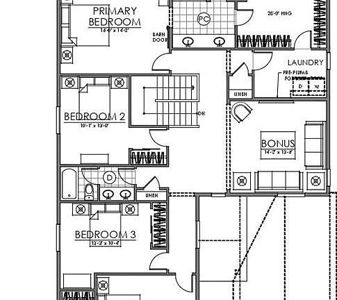 Welcome to Mayberry! Presenting our Plan 4, which features 5 bedrooms, 4 bathrooms, Big 3 car tandem garage, and 3825 Square feet. Large windows bring lots of natural light into the open concept main living area, the kitchen features quartz countertops, gas range, stainless kitchen appliances (Fridge is included!), plenty of extra height cabinets, and a spacious pantry. The primary bedroom suite features a fabulous walk in closet, quartz countertop, dual sinks, ample cabinetry, and a walk in shower with glass enclosure. Upstairs you'll also find 3 more bedrooms, hallway bath with oversize tub, a bonus room, and a generously sized laundry room. A 5th bedroom with en-suite 3/4 bath and an additional 1/2 bath are on the main level. This home features a 1000 Sq Foot unfinished basement, ready for your final touches, with plumbing drains already in place. Home is To-Be-Built, many options are available, you can add a 5 car garage or even a multi-gen living suite with separate entrance! Pictures are of a similar home that was recently completed. Colors may vary.
