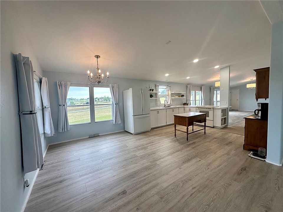 • Ceiling Fan(s), Kitchen Island, Painted Cabinets, Vaulted Ceiling(s)