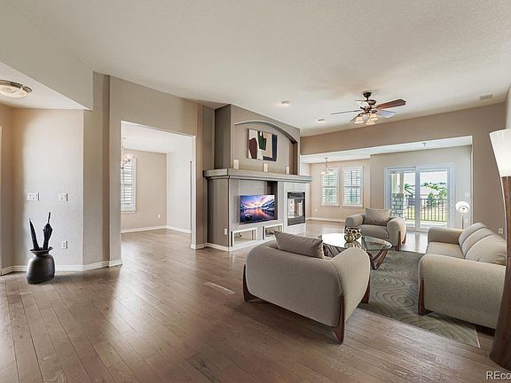 Welcome home to this exquisite attached single family home backing to the beautiful 13th fairway! This is the second largest of the 4 duplexes in the Traditions Collection #803. With gorgeous (real) hardwoods, plantation shutters and surround sound throughout, the breezy main level features a large family room with a double sided gas fireplace, dining room, breakfast nook, kitchen with 42" cherry cabinetry and commercial grade stainless steel Maytag appliances, a light and bright office (or a 3rd bedroom) with built in desks and cabinets, laundry room (Maytag washer and dryer included) and a fully remodeled full bath. The main floor primary en suite showcases a fully remodeled bath and a huge walk in closet. The fully finished lower level features a large guest bedroom, another fully remodeled bath with steam, a full wet bar with wine fridge, ice maker and dishwasher. There is also a family room with a second gas log fireplace. There is a ton of storage and counter space in the oversized 2 car garage complete with flourescent lighting, a Lennox heater and utility sink. Both of the South facing upper and lower patios have gas lines for convenient grilling and the Furnace and Water heater are newer. Heritage Eagle Bend is the premier 45+ lifestyle gated community offering 24 hour security, snow removal and landscaping included in the HOA. With a public 18 hole championship golf course, the excellent Eagles Nest restaurant, inspiring front range views, indoor and outdoor pools, pickleball courts, a 37,000 square foot clubhouse filled with everything from a library to a state of the art fitness center to a ballroom, come see for yourself why the Heritage Eagle Bend residents just love living here!