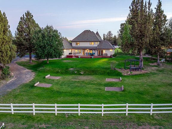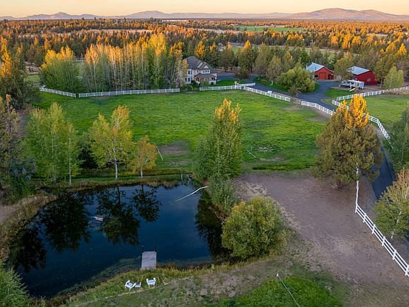 Welcome to Neff Estate, a stunning 20-acre farm where country serenity meets the convenience of nearby Bend. Set within irrigated fields, this estate features 12 acres of fertile land, perfect for harvesting orchard grass hay or supporting equestrian pursuits. A well-equipped barn, custom greenhouse, and multiple RV hookups ensure versatility, while a spacious shop and detached studio offer endless opportunities for work, hobbies, or business. The charming home features open living spaces, a cozy country kitchen, and a newly converted main-level primary bedroom with ensuite. Upstairs, enjoy a luxurious owner's suite with vaulted ceilings, a soaking tub, and walk-in closet, plus additional guest rooms. Outdoor living shines with manicured grounds, a tranquil pond, a hot tub with mountain views, and ample entertaining areas. Neff Estate is the perfect blend of farm life and modern luxury, just minutes from Bend.