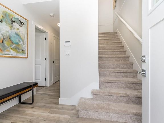 FRASER by Zenterra! Former show home shows like a show home still! Kitchen Aid appliances with a gas range, white shaker style cabinets with black accents and a balcony with a natural gas outlet for easy summer BBQ! Updated West Elm and Schoolhouse lighting in the kitchen and dining areas. Central forced air with A/C and hot water on demand. Vaulted ceilings in the master and a huge walk in closet! Safely nestled in Murrayville, walk to shopping, groceries, restaurants, WC Blair Rec Centre, James Hill Elem, beach volleyball, basketball, roller hockey and more! Large Double side by side garage with epoxied floor/filled with built in shelving. 2 Pets allowed, no size restrictions!!