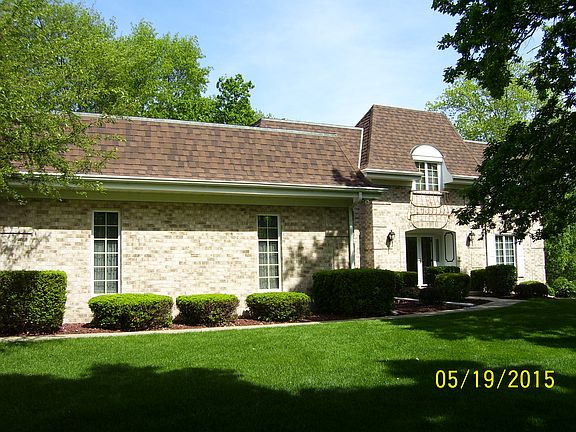 Pride of ownership shows inside and out! Prestigious private neighborhood near golf course. Over 3,600 Sq. Ft. of finished luxury living space, plus a lower level, perfect for future expansion and access via 2 staircases. Enjoy spacious rooms with many updates and quality throughout. Main level has an over sized eat in kitchen with granite counter tops, large family room with floor to ceiling brick fireplace, a 4 season porch perfect for relaxing and enjoying the peaceful surroundings, a large utility/laundry room, a formal dining room, a den with wet bar and a formal living room. Gorgeous open circular staircase in grand foyer. Large master suite with recently remodeled master bath with whirlpool tub & tiled walk in shower. Enjoy an over sized 3 car garage that is insulated, heated with a floor drain and lots of storage. Second over sized 1 car garage with extra storage or even room for a 2nd car on a lift. Meticulous manicured lawn. A truly impressive home in every way.