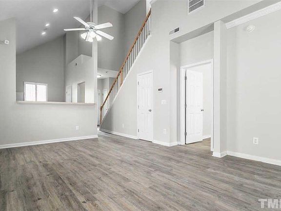 Downstairs Master in Desirable Bedford Neighborhood! Lovely, newly renovated townhome located in desirable Bedford at Falls River neighborhood on a quiet cul-de-sac within walking distance to the community pool, clubhouse and greenways: *Open, Airy floorplan with vaulted downstairs living; *New Stainless Steel Kitchen Appliances; *Gas Fireplace in Living area; *New floors and Plantation Shudders throughout first floor; *Downstairs Master Bedroom with large bath and huge walk-in closet; *2 spacious upstairs bedrooms with shared hall bath; *Nice sized laundry room not just a doored closet; *Lots of storage with custom built-in shelving in master closet, laundry room and outside storage/utility room; *Private wooded, fenced back area with screened-in patio/porch area, perfect for relaxing outside; *Many amenities like community pool, tennis court, clubhouse, playground, and Neuse River Greenway Trail! One year lease required. Includes pool and all community amenities. Absolutely NO SMOKING; Prefer no pets, but will consider allowing 1 small non-shedding dog with additional pet deposit; absolutely no cats or shedding dogs allowed. Available first of October. Deposit of one month's rent, employment/income verification and full credit and background checks required. No Smoking; No Pets; 1 year lease required; discount given for 2 year lease; 1 month security deposit and 1st month's rent due at lease signing;