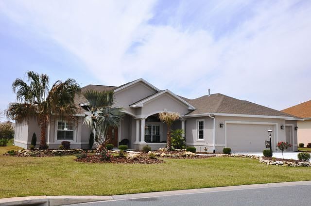 Welcome to this breathtaking Premier home overlooking water. Stout palms and gorgeous landscaping greets you as you drive up to this home featuring a golf car garage. Just minutes away from the excitement of Lake Sumter Landing Market Square. From the grand entrance, throughout the spacious living area, you will be impressed with breathtaking features such as Plantation shutters, a gourmet kitchen enhanced with stainless appliances, wine rack, breakfast nook, Corian countertops, walk-in pantry, center-island, tiled backsplash and cherry cabinets. Additionally, enjoy the large outdoor living area overlooking the water, gas utilities, April-aire zoned A/C, laundry room cabinets, a luxurious master suite with large Jacuzzi tub for relaxing, California closets and tray ceilings. You couldn’t want for much more! If space and view is what you are looking for, this is it.