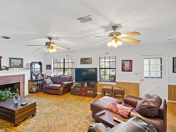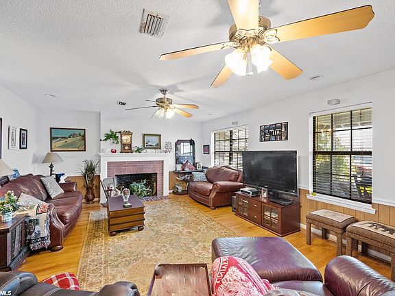 This home is so full of character and has a great view of Perdido Bay right across the street! This is a 2 bedroom house with a separate guest cottage in the back yard. Wood and tile floors throughout and a wood burning fireplace in the spacious living area. Storage space everywhere! An oversized master bedroom just waiting for you to make it your own! In the kitchen, you even have a downdraft grill in the island and a large amount of cabinet storage in the dining room. The 23x12 sunroom out back is heated and cooled to the same temperature as the rest of the home and even has its own window unit that does heat and cool should you prefer to adjust the temperature. There is also a sink with space for a mini fridge in the sun room (existing mini fridge will not convey), as well as a fold out table attached to the wall. The whole home has a central vacuum that still works to the seller’s knowledge. In the backyard, you’ll find a great little guest cottage with a window unit and a full bathroom, as well as a small workshop. The backyard also has a patio of pavers, and is full of azaleas, a palm tree, and a live oak, giving it some much needed shade in the summer! And a Rainbird sprinkler system to water all your beautiful landscaping. The privacy fence was replaced in 2020 and all but the back property line is privacy fenced. All measurements to be verified by buyers ao buyers agent.
