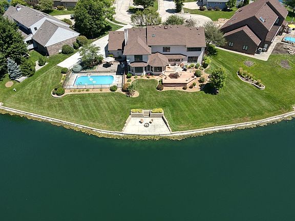 Well maintained custom built home with an amazing one of a kind lake front setting. Amazing views from all main living spaces, which includes Kitchen, Family Room, Formal Dining Room, Great Rooms and 3 Bedroom Suites. This 5200 sqft home includes 5.5 baths, 4 bedrooms plus office space. Large open basement includes a Theater and family rec area. Outside, enjoy the gorgeous in ground pool and patio area, deck, lakeside sitting area with a fire pit. Updtes include: 2 HV/AC units (2017), sea wall (2016), electeric pool cover (2019), pool heater (2016). Convenient to shopping, dining, parks, Carle at the Fields.