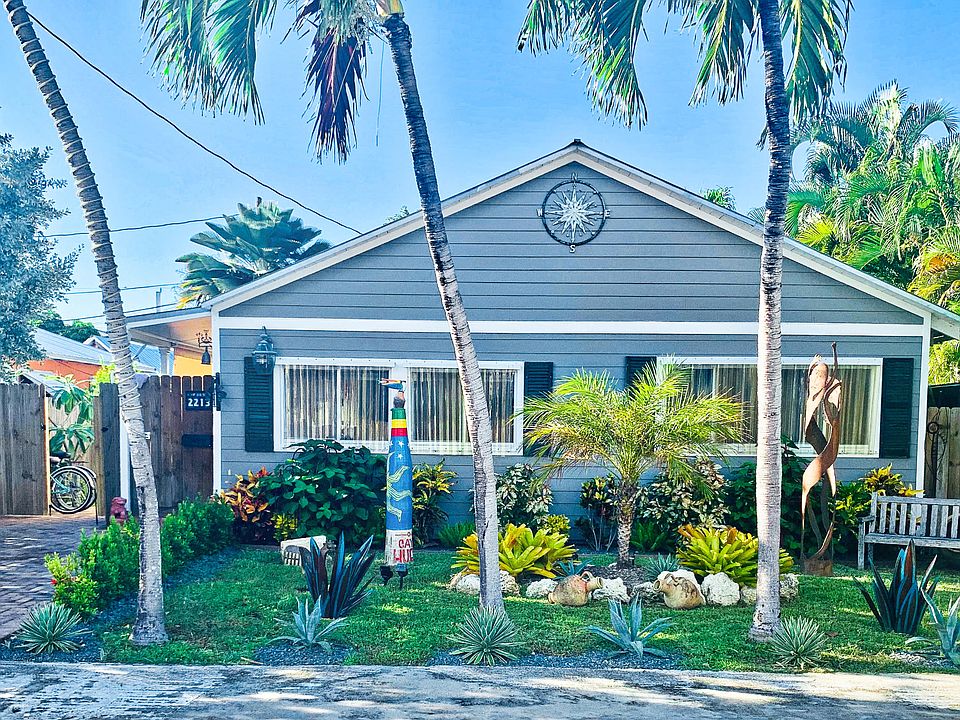 Oasis found in this two bed, two bath island home located in Midtown Key West. The vaulted ceiling with exposed beams and wall of sliding glass doors create a beautiful, open living space. Fully equipped kitchen with granite counters, stainless appliances and spacious island with additional storage. Bonus space in upstairs loft perfect for an additional sleeping space and storage. Plus sunny laundry room that doubles as a home office. Retreat to your backyard paradise complete with entertainment area shaded by the large, thatched tiki. Mix drinks at the bar while overlooking the pool and lush landscaping made completely private by the fully fenced yard. New hardi board siding and fresh paint along with newly paved driveway, paths and patio. If you can tear yourse