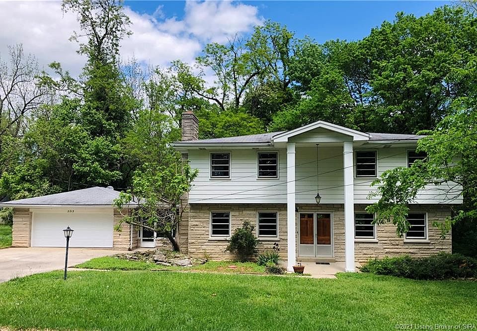 WOW! Over 2700 sf 4 BR 2 1/2 BA w/ WALKOUT BASEMENT on nearly a HALF ACRE lot w/ PRIVATE wooded views! Many updates blend well with the original charm of this BEDFORD STONE BEAUTY! Updated Eat In Kitchen w/ pantry, Oversized Family Rm, Dining Rm AND Living Rm. 4 HUGE BEDROOMS, 2 have Walk In Closets, cool vintage tiled bath w/ separate shower & tub. New Carpet, LVP, Fresh Paint, New Garage Door opener, HVAC serviced and cleaned, this home is MOVE IN READY, Clean and you get IMMEDIATE POSSESSION! Nice screened in porch leads to large 2 car Garage with workbench included. Many closets for storage, Bar area in basement, 2 Fireplaces, Hardwood Flooring and a neat playhouse/shed in the back yard. 2nd full bath is in an unfinished area in the basement yet the bathroom is fully functional! SO many neat features in this charming home, make sure you reach out and schedule your showing right away! *One member of the owning LLC is a licensed real estate agent in Indiana.*