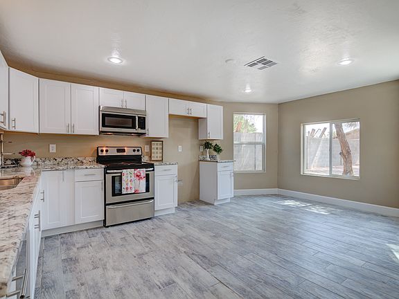 Introducing this 2 bed/2 bath remodeled home in the up and coming GREEN GABLES neighborhood. Master bedroom has walk-in closet, LUXURIOUS, large walk in shower. All New Low E Windows, New wood-like tile flooring, gourmet LARGE kitchen, new SS appliances, custom cabinets & granite countertops. new carpet...the list goes on. BUT WAIT! All this PLUS a fully remodeled 538 sq/feet SEPARATE GUEST HOUSE, could be a great rental income! You have got to see this one!! Near shopping, Downtown, 51 freeway & Phoenix Children's Hospital.