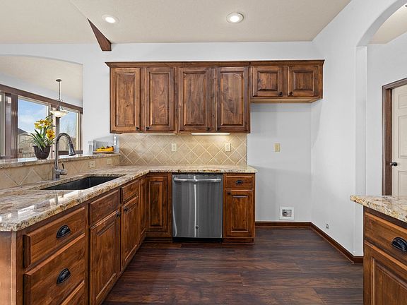 Welcome home to this Fabulous Newly Remodeled Midlevel Walkout home in the Chestnut Ridge Addition!! Located in the highly sought after Andover School District with lower Sedgwick County Property Taxes and all Special Taxes paid off! This home features 5 spacious bedrooms, 3 full baths & 3 car garage. New interior and exterior neutral paint throughout the entire house! New water resistant laminate floor in the Kitchen and Hearth room. Beautiful vaulted beamed ceiling in the Hearth room with Gas Fireplace! Hearth room & Living room have Nice Large Windows to bring in the Natural Light. Living Room has Remote Controlled Electric blinds. Gorgeous Granite Counters in Kitchen with a Nice Breakfast Bar Area to Enjoy! Kitchen includes a Walk in pantry, providing a nice space for storage. Brand NEW carpet on main floor Living Room and Bedrooms. Master bedroom Suite with Vaulted Ceiling, Walk in closet, Master Bath with Double sinks, Jetted Tub and Separate shower room. Full Finished Basement includes a Spacious Rec. Room with Gas Fireplace & Roomy Wet Bar! Great Area to Relax and use as living space or a movie room after a busy day! Finished Basement includes Two Bedrooms & Full Bath as well! Beautiful Wrought Iron fenced backyard with Well & Sprinkler ~ Enjoy Relaxing on the Large Stamped Stone Patio that features a Rock wall sitting area & Stone Firepit for Entertaining! This is a Don't Miss! Come take a Look and schedule your Private Showing!