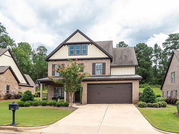 Incredibly maintained MODEL HOME with all the bells and whistles! Private lot on a quiet street, backing up to non-buildable berm. Upon entry, note the spacious main level with formal dining room, great room, and expansive kitchen. Complete with two islands, upgraded appliances, ample storage, and tons of natural light. Off the kitchen is a covered patio overlooking the yard. Main level owners suite with walk in closet and large en suite. Main level guest suite. Laundry room convenient to the owners suite. Upstairs you will find three additional bedrooms sharing a large hall bathroom with a double sink vanity and seperate water closet. Bonus room/media room includes a projector, screen, and speaker system. Additional storage in the bonus room hidden by barn doors. Two car garage, irrigation, surround sound, spray foam insulation, and a gas tankless hot water heater complete this lovely home! HOA fee covers lawn maintenance, weed control and pine straw.