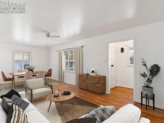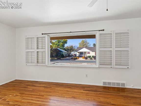 Welcome to this classic Bonnyville one level bungalow featuring 3 bedrooms and 1 bathroom. This home is just a short walk from The Bon shopping center, offering everything you need—from grocery stores and banks to hardware shops and the delightful Humble Coffee. As you enter, you’ll be greeted by a bright and airy living and dining area, seamlessly flowing into the kitchen. The home boasts beautiful solid oak hardwood floors and plantation shutters with fresh interior paint. Step outside to enjoy your covered front porch, where you can take in views of Pikes Peak and watch sunsets in the evenings. The covered back patio provides a perfect spot for outdoor relaxation or entertaining. This property also features a detached 1-car garage, complete with a bonus room that can serve as a workshop, exercise room, or whatever your imagination desires! Don’t miss out on this lovely home that combines comfort, convenience, and charm. Centrally located with easy access to commute to all areas of the city and within close proximity to Penrose main hospital, The Patty Jewett golf course and Colorado College. Don't miss this opportunity to call this home! This property is being sold as-is.