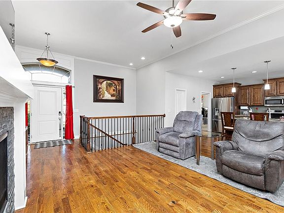 Fantastic reverse 1.5 story floorplan in the heart of Staley Hills, featuring an open floorplan with spacious living room/kitchen with large island; featuring master/master suite, additional bedroom and full bath, large walk-in pantry, laundry room and drop zone all complimenting the main level. Walk out to the covered porch just off the kitchen and  overlook the spacious fenced in backyard. The finished walk-out lower level has an additional 2 full bedrooms and full bath, large and open rec room complete with large walk-up bar area. Newer carpet throughout.