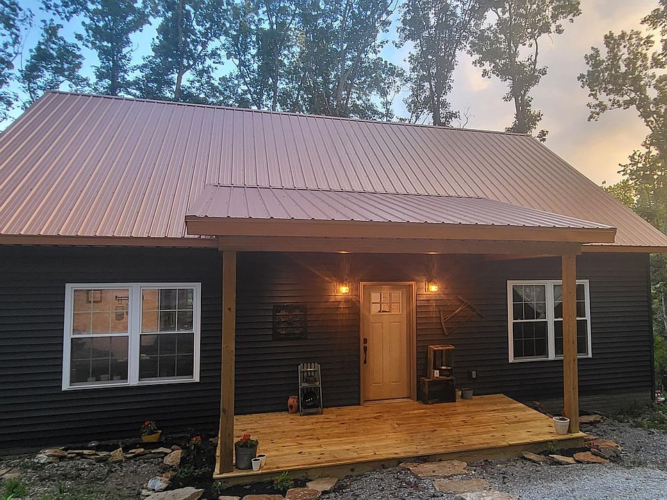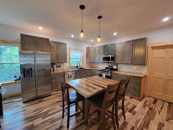 Country Living on 11+ acres, House Less than One Year Old! This spacious one and a half story with a modern farmhouse sets atop a walkout basement surrounded by woods and beautiful views. Entering the front door, the gleaming pecan wood floors that flow through the main level open floorplan. The kitchen features Amish cabinetry new stainless appliances and a large walk in pantry. Also on the main level are the spacious Owner's suite with large walk-in closet and private Owner's bath with jetted tub. Upstairs are two more large bedrooms with great wooded views. In the walkout basement with poured concrete walls the work has been started to add two more bedrooms and another full bath. Not far from State Road 37 this home boasts the seclusion of country living while being an easy commute to both Bedford and Bloomington.