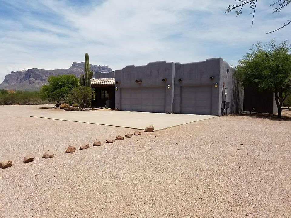 Looking for more than a home, but a lifestyle that connects your spirit to the stunning beauty of the Sonoran Desert & the Superstition Mountains? Then this is your home! Peaceful & secluded - Exquisite views of the sunrise coming over the mountains. True Southwest style home features the warmth of natural beamed vigas- 3 BRs, 2 full baths, large Kitchen, stainless steel appls & pantry, great room with fireplace & built-in bookcase & niches. Master bedroom suite with custom built bed frame, walk-in closet & full Bath with two vanities, a large soaking tub & standing shower. Oversized 3 car garage with built in cabinets. Outdoor living area- covered Saltillo tile patio that wraps around 3 sides of the home, flows to large Saltillo tiled patio with Fireplace and Built-in BBQ area + Balcony.