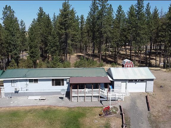 Close-in country living on 3.72 acres just minutes from Airway Heights, Spokane and a quick commute to Fairchild Air Force Base. This one level rancher features a new gas heating unit, 3 bedrooms, 1.5 baths, and the living room open to kitchen and dining area. The large primary bedroom features double closets and bath, it also has large sitting area/office space and a new mini split heating and cooling unit. There are 3 covered decks, a 2 car garage, a massive 30x40 shop with electricity, and multiple storage sheds. The exterior features a fenced-in backyard, a fenced garden area with garden beds, and RV parking pad with power. Newer well pump and bladder, newer carpet, new exterior paint, new appliances in 2022 including stainless steel stove and dishwasher. New septic installed in 2014, and it was pumped and inspected in March 2022. This is a modular home not a MFG home, so lending on it is stick site built and this home is move-in ready sits in an area of very nice homes.