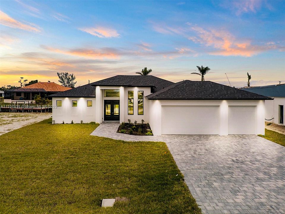 The dream home you’ve been waiting for. Enjoy Florida’s west coast sunny days in this modern luxurious new construction waterfront home located in the heart of Cape Coral, FL. The most desirable boating paradise neighborhood. Featuring 4 beds/ 3/baths, walk in closets. kitchen with quartz countertops, porcelain floors, glossy Italian wood cabinets & stainless steel appliances. Living room has an open floor plan, impacted windows and high ceilings. covered garage for 3 cars. A Covered fenced back yard with a spacious swimming pool/ tub, plus an outdoor shower. Private dock with Great and easy access to the intercostal. Agents do your due diligence, as we ensure all data is current and accurate. However, we are not responsible for any liability for inaccuracies.