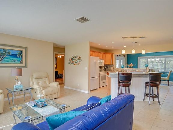 SAILBOAT ACCESS!! This home features beauty, style, class and true Florida waterfront living! This is a remodeled home on deep water Gulf access with a 90' seawall, 50' dock, 12,000# boat lift w/power and water only 800 ft to the Caloosahatchee River. This home features 3 bedrooms, 2 full baths, over-sized 2 car garage, pool and large enclosed pool patio with westerly exposure for the nightly sunset views. It offers a formal dining area, a spacious master bedroom suite open Kitchen with breakfast bar. It is meticulously maintained inside and out with new roof in 2016, perfect home to enjoy this SW Florida boater's paradise!